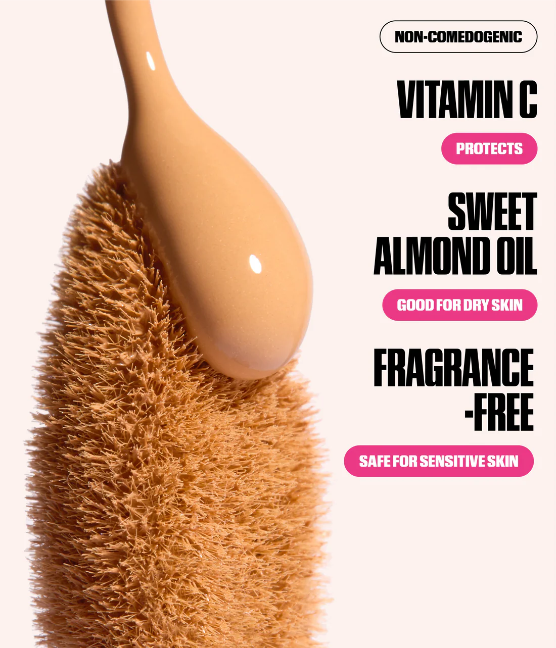 ضعي نقاطًا قليلة على المناطق المراد تغطيتها (تحت العين، العيوب)، وادمجي بالفرشاة أو الإسفنجة. يمكن البناء حسب الحاجة.